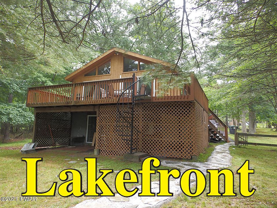 LAKE FRONT Located in a private community with access to 120 acre lake with beach area, restaurant, and club house. This four bedroom two and one half bath getaway might be just what you are looking for.