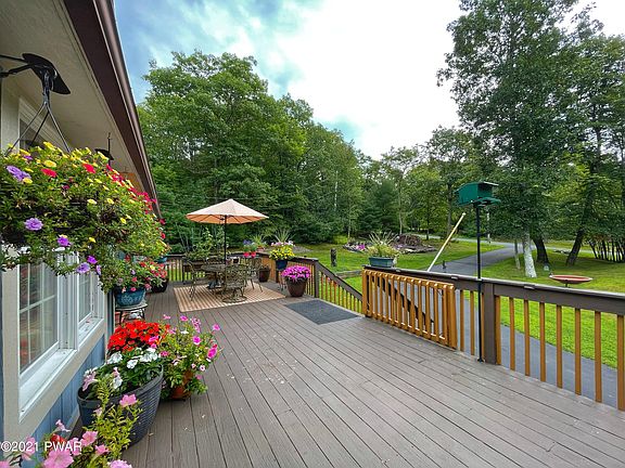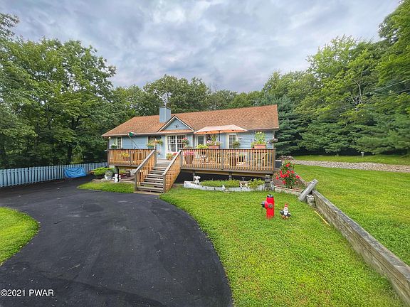 Don't miss out on this unique RANCH on an acre lot. This home has solid hardwood oak flooring. A cozy Livingroom with an insert for a Fireplace or Wood Stove. ''Cooks'' Kitchen with a center Island, stainless steel appliances and a large pantry. The dining area walks out to a bright 4 season room. That will make you smile. Access to a large deck, for BBQ's. And patio with a hot tub, for year round fun! The Master Suite is on one side of the house with a double vanity & jacuzzi. 2 other very nice sunny bedrooms on the other side of the house. LL has a mancave/bar area. Laundry area with a full size stackable washer/dryer. Home is cooled with Central A/C. Heated with an Economical furnace. Fueled by pellets. On demand HW heater. Whole House Generator. 2 car garage, paved driveway.