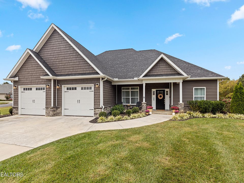 This one-owner recently built (2018) IMMACULATE home features an ample welcoming front porch, a fantastic open floor plan, three bedrooms, an office AND a phenomenal kitchen. The Great Room boastes a gorgeous corner stacked stone fireplace. The kitchen has an island, pantry, granite counter-tops and stainless steel appliances. The owner's suite is open and welcoming with a large walk-in shower and separate dual vanity areas. The Laundry Room has a folding area, a place to hang your clothes and a separate area for additional storage. This one level ranch provides all the easy-living convenience you could desire in your home with it's spacious design. Located in Tellico Village which is planned community with amenties that include: three challenging championship golf courses, a wide array of activites at two recreation facilities, a 27,000 sq ft Wellness Center with suanas, indoor swimming pool, warm-water therapeutic pool, tennis courts, pickleball courts and a wide array of yoga, dance or Tai Chi courses, a 20,000 yacht/country club with dining, extensive walking and hiking trails, and three marinas with numerous boating and water sports available on Tellico Lake which has 357 miles of shoreline and 15,560 acres of water surface. Come see this today - you will be glad you did. All information deemed reliable but not guaranteed. SF is approximate and must be verified by buyer.