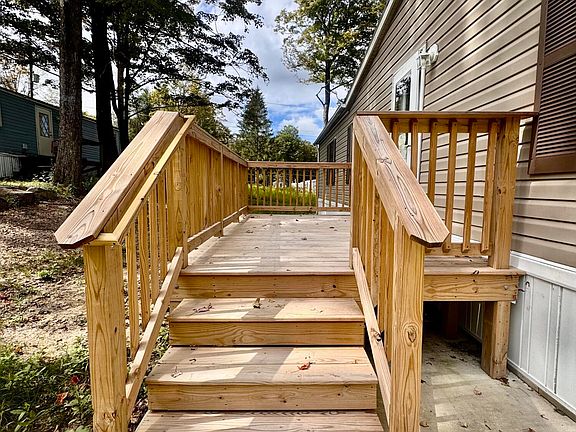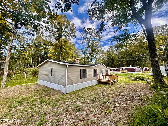 Step into this updated double-wide mobile home offering 3 bedrooms, 2 full baths, and an open, airy layout. The home features central AC, plenty of natural light, and a brand-new deck with a side porch for outdoor enjoyment. Surrounded by trees and wildlife, it's the perfect setting for peaceful living. Located just minutes from Promised Land State Park and a short drive to Lake Wallenpaupack, this home combines comfort, convenience, and nature--ideal for morning coffee on the deck or evenings under the stars.