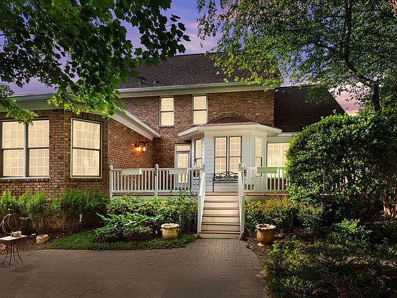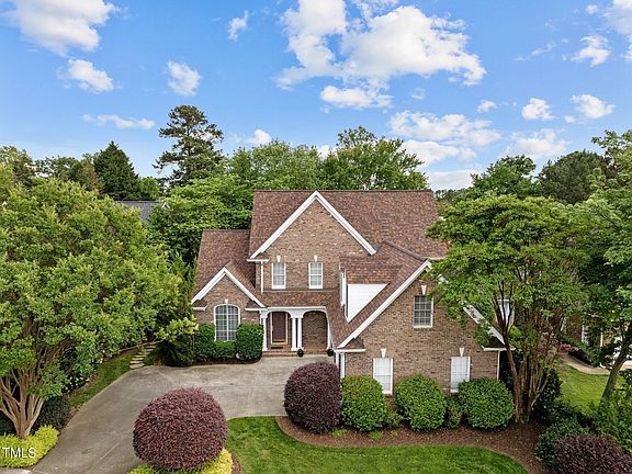 All brick custom quality built home by award winning builder Braswell Construction! Conveniently located in North Raleigh minutes between I-440 and I-540 and within walking distance to Whole Foods, shops and amenities. Elegant hardwood floors, crown molding, arched doorways with fluted trim and keystone accents greet you as you step inside. The kitchen offers 42'' custom raised panel cherry cabinetry, upgraded tile backsplash, quartz countertops and sink, and stainless steel appliances that include built-in double wall ovens and microwave, gas Thermador cooktop with Jenn -Aire telescoping exhaust and Bosch dishwasher. A bayed breakfast nook surrounded by windows with plantation shutters looks out onto the deck and nicely landscaped and private backyard. The 1st floor owner's suite features a large walk-in closet and adjoins the luxurious owner's bath with tile floors, two separate vanities, crown molding, recessed lighting, corner whirlpool tub and separate shower with tile surround. Family room with cathedral ceilings and a cozy gas log fireplace opens to a formal dining room featuring vaulted ceilings, chair-rail with picture frame wainscoting, custom wall treatment and large arched window with plantation shutters. The second floor has a huge bonus room, two bedrooms, with a Jack-and-Jill bath in between them, and an unfinished walk-up attic for ample storage. A relaxing large Trex deck and painted handrails overlook the private and lush backyard with a variety of trees and shrubs, a paver-stone patio and fire pit. Other notable features include an oversized 2-car side entry garage with EV Charger, new roof in 2020, front and back yard irrigation system. Front yard grass maintenance, such as mowing, seeding, and fertilizing, is the responsibility of the HOA.