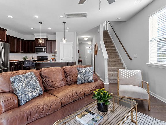 Meticulously maintained Jordan Built Homes End Unit townhome in prime Durham location featuring 3 bedrooms and 2.5 baths. Hardwood floors throughout the main level and recently replaced carpet on second floor. Chefs kitchen w/ granite countertops, stainless steel appliances and gas stove. Spacious primary bedroom w/ ensuite bathroom w/ dual sinks, shower and soaking tub w/ large walk in closet. Designer light fixtures and ceiling fans throughout truly finish the space. Neighborhood amenities include pool, dog park, & sidewalks. HOA provides a maintenance free lifestyle covering roof, exterior maintenance, and termite inspection. Location is approx. 10-15 minutes to Downtown Durham, RTP, and RDU. Easy access to major highways, shopping and restaurants. WELCOME HOME!