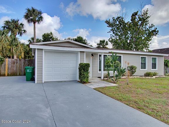 Wonderful, upgraded 3 bedroom/2 bathroom POOL home with a 1-car garage in Cocoa less than a 30 minute drive from the beach! Front of the home faces a small community park with a playground. Inside you'll see this home has new luxury vinyl floors, new interior and exterior paint, and a ALL NEW kitchen!! Featuring NEW quartz countertops, new cabinets, new beautiful backsplash, all new stainless-steel appliances. Sliding doors in the dining area adjacent to the kitchen opens up to a newly painted back patio with a glistening blue pool that was just RESURFACED this year! You'll love the spacious master bedroom that has double built-in closets, an attached sitting room with a true master bathroom, and sliding glass doors that open up to the back patio and let in plenty of natural light. New 2024 HVAC and water heater, Roof 2017. Easy to show!