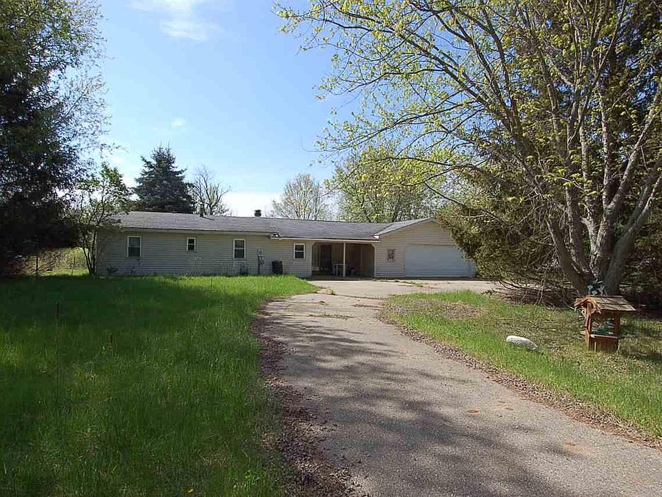Enjoy water sports on the Muskegon River. Canoe, kayak and fish from shore. Seller reports good brown trout fishing. 330 feet of river frontage (3 lots). Also includes 3 additional lots across the street (total 6 lots). 3 bedroom 1500 sq. ft. home with attached ex-large (30 x 40) 4 car garage. Fireplace in living room. Laundry room on the main floor. Large family room for entertaining. There are hook ups for a 5th wheel on Lot 42 where an old mobile home was removed. Well, septic system and power pole.
