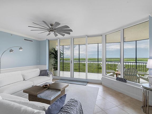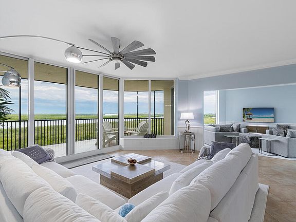 Southern views for miles! Welcome to this newly updated light and bright highly sought after 06 unit. With over 2800 sq feet under air this unit features 4 bedrooms 3.5 bathrooms, completely updated kitchen with freshly painted ''forest plum'' cabinets, new Kitchen-Aid super quiet dishwasher, new countertops with continuous back splash, built in refrigerator and under cabinet lighting. Recent updates also include new large tile in all bathrooms, new bathroom countertops and fixtures, new wood plank tile in the 4th bedroom / den, custom drapes, beautiful new wainscoting throughout the living areas, updated high end hardware throughout, new luxurious light fixtures and ceiling fans , freshly painted doors, new light switch dimmers / covers, new LG washer / dryer and multiple color lighting ambiance choices on the lanai. Glorious views of Marco Island, Gulf of Mexico and the pool at Lesina from every window and multiple lanai spaces. New quality turnkey furnishings are included with many custom pieces. This unit is ultimate perfection!