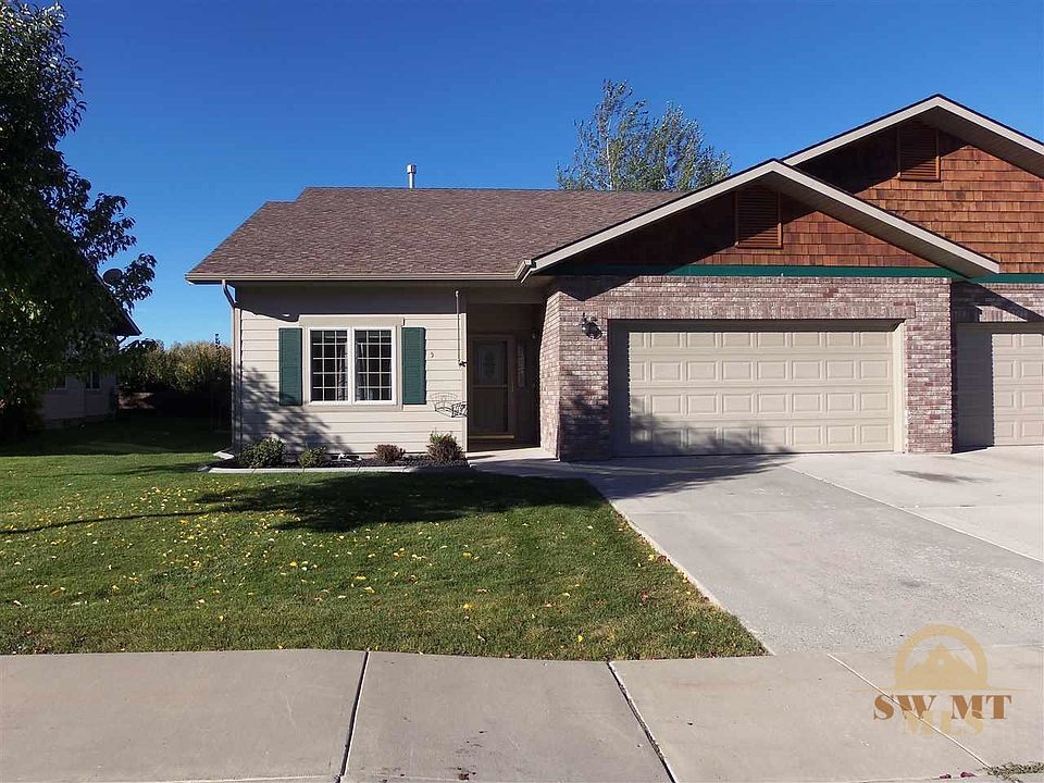 Beautiful townhouse within walking distance to Bridger Ck Golf Course and Bozeman Trail. Solid oak flooring in wide entry, kitchen and dining area. Tile flooring in baths and utility room. Spacious kitchen design with center island, lots of cabinet/counter space. Sunny vaulted living room & master suite. Gas fireplace with oak mantle. Central AC. Landscaping with underground sprinklers. Reasonable HOA dues - $75/mo which covers lawn and snow maintenance, sprinkler turn on/off & property management.