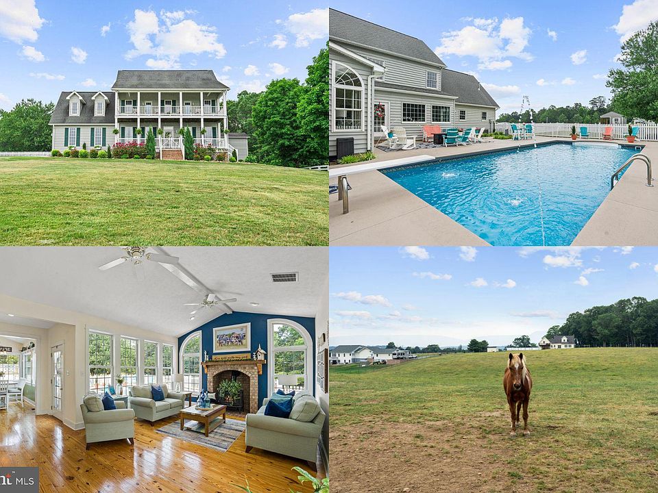 Once upon a time, stood a breathtaking home nestled on over 21 acres of land. It perfectly embodies the essence of southern living and captures the hearts of all who behold its beauty. As you approached the home, you are immediately captivated by the enchanting sight of the beautiful front porch, offering sweeping views of the majestic mountains. It is the perfect spot to savor the simple pleasures of life, like sipping sweet tea and being mesmerized by the glorious sunsets that paint the skies. Upon stepping inside, the home embraces you with timeless charm and elegance. The southern plantation design with knotty pine floors throughout exudes a warm and inviting atmosphere. The main level unfolds into a spacious and open floor plan, seamlessly blending the formal dining room and living room areas. A cozy fireplace beckons you to gather with loved ones, while the family room provides a comfortable space to relax and create lasting memories. Adjacent to the family room, the seasonal sunroom welcomes you with its vaulted ceilings, allowing the beauty of the natural surroundings to captivate your senses. In the winter, a wood-burning stove provides warmth and coziness, while in the summer, you are delighted by the glistening saltwater pool just beyond the doors. One of the many features of this home is its main level living, with a private en suite beautifully tucked away for privacy and peace, and 2 additional 1/2 bathrooms. As you traverse across the house, you come into the beautiful Southern charm kitchen and dining area, followed by the renovated laundry room. Every corner of this home showcases the attention to detail and exquisite craftsmanship. Ascending the stairs, you discover four additional bedrooms and three full bathrooms. And let's not forget the balcony, where you could once again indulge in the breathtaking views that stretch before you. But the surprises don't end there. As you ventured up to the third level, you discover a wide-open rec room, offering a space that ignites your imagination. It provides endless opportunities for a game room, entertaining, crafting, or whatever your heart desires. This extraordinary home is designed with both relaxation and entertainment in mind. Outside, the stunning saltwater pool is the centerpiece of leisure where no expense was spared, creating an oasis surrounded by the picturesque beauty of the Shenandoah Valley. It provides ample space for any kind of large gathering, and as your eyes wandered across the property, you will see three additional sheds for all your storage needs. A barn with three stalls, electricity, and water stands offering further functionality. This home is truly a sanctuary of joy, a place that makes you wonder where it has been all your life. Welcome to Page County, where this extraordinary home awaits you. *** Accepting backup Offers