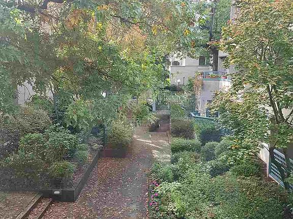Very quiet 1 bdrm southwest facing unit, with big patio and in ste laundry, engineered hardwood floors, in bdrm and living areas. 1 parking, 1 locker, at Broughton Terrace in the heart of the west end. South facing unit overlooking the serenity of the courtyard from the living room, bdrm and the patio. Window in the kitchen faces north and brings in good light as well. Pets allowed with strata approval and rentals allowed. Quiet a few units have renovated and opened the kitchen to create a bar stool area and allow light to floor from North to South throughout the whole unit.