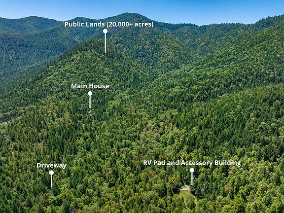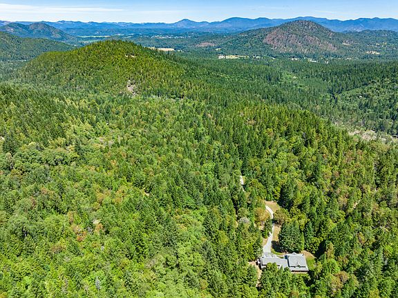 Bull Creek Ranch; a rural paradise nestled on 111 ac within a wooded and private oasis. Includes a beautiful main home, 3,000 ft of creek frontage, incredible network of trails, direct access to thousands of acres of public lands and more! The home, with its wrap-around deck was recently updated and offers an open and spacious floor plan. A formal living room & dining room, a beautifully updated kitchen, main living space with grand vaulted ceilings, a full bath, guest bath, laundry room and a home office round out the main floor. Upstairs is the master suite with walk-in closet & updated bath, 3 guest bedrooms and a guest bath. An attached, finished 2 car garage & additional workshop + an unfinished bonus room with over 1,000 SF. A short drive from the house is the accessory building with its own power, water, septic and RV parking with full hookups. Here you can enjoy all that the rural lifestyle has to offer, yet benefit from being only 10 miles from the conveniences of Grants Pass.
