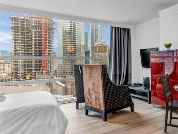This fully furnished studio condo, with all utilities included, is on a high floor with breathtaking views of the city skyline. it is located in the prestigious Wall Centre, a spectacular 30-story condo tower in downtown Vancouver. This beautiful structure exemplifies modern beauty and sophistication, with 180-degree views of the mountains, city, and water. The excellent position of the Wall Centre immerses you in a variety of attractions, from renowned restaurants to boutique stores and entertainment venues. Wall Centre caters you the urban lifestyle you desire, with UBC, Robson Square, banks, recreational amenities, Helmcken Park, and a variety of restaurants all within walking distance. Enjoy the convenience and functionality of this well-appointed space in the heart of downtown Vancouver. Includes all utilities and high-speed Internet. Residents can order room service meals and beverage from the adjacent Sheraton Hotel with a 20% discount. The rent for this studio is $3,600 per month for a 1-month stay. For long-term stays, the rent is $2,700 per month.