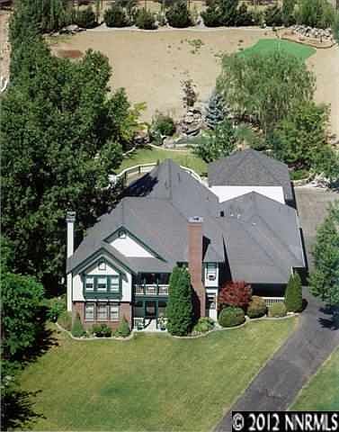 COTTONWOOD MANOR-Unique and Stunning Victorian-style private estate. Dramatic landscaping on over 1 acre of Horse-permitted property. City & Mountain Views from 3 private decks, one with built-in swimming pool. Two Rock Pond Water Features, Outdoor Fireplace and Barbeque Area, Natural Grass Chipping Green, Located just blocks from Wolf Run Golf Course, 5 Car Garage plus Carport. Room for RV's. Boats & Large Toys. Private and Secluded Location yet just minutes from Mt. Rose Hwy. Professionally Crafted, Park-