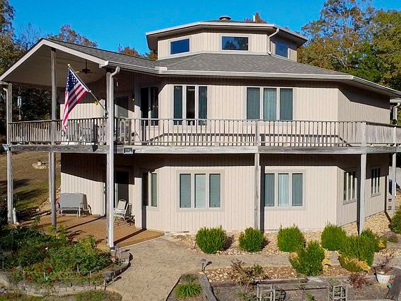 This is truly a one-of-a-kind country estate! Privately nestled on 86+/- acres of beautiful timber, this stunning and unique home has everything you need to live comfortably while being conveniently located to Nashville. Meticulously built with a unique octogen shape, this home efficiently utilizes every space. Custom cabinets and furniture can be found throughout, including a custom-built spiral staircase used to access a lofted office with panoramic views. The wrap-around porch provides the perfect location to relax while watching wildlife feed through the yard. A large, 72x36 garage and shop is insulated with utilities and can be converted into an additional living space if desired. This detached garage is the ideal place to store tractors and other equipment while the insulated shop has been used for woodworking. The gravel driveway weaves through beautiful, mature timber along a ridgetop with several additional trails branching off. This unique property won't last long!