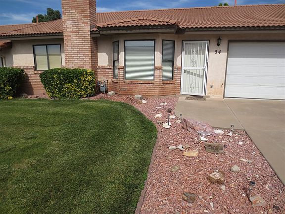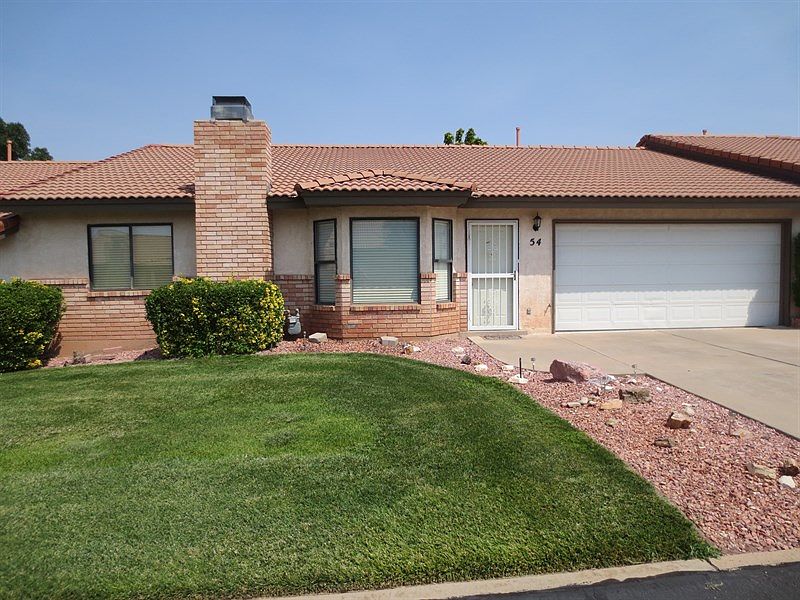 This is a fabulous condo in an excellent 55 and older community. With 1,856 square feet, this home features 3 bedrooms, 2 bathrooms, and a large master bathroom with dual shower heads and a jetted tub. This home was built in 1990 and has a 2 car garage. This is a desired community just off Brigham Road near Hidden Valley. The community has many great features and you have your own yard that backs up to a large grassy area. It really is in a great location. The association dues are $205 per month and include a community pool, tennis courts, water, cable, garbage, yard maintenance, roof, and exterior building insurance and maintenance. This home would be a fabulous retirement home as well as the perfect winter home in our beautiful St. George. It is listed for only $169,900. Come look at it today to make your dreams a reality.
