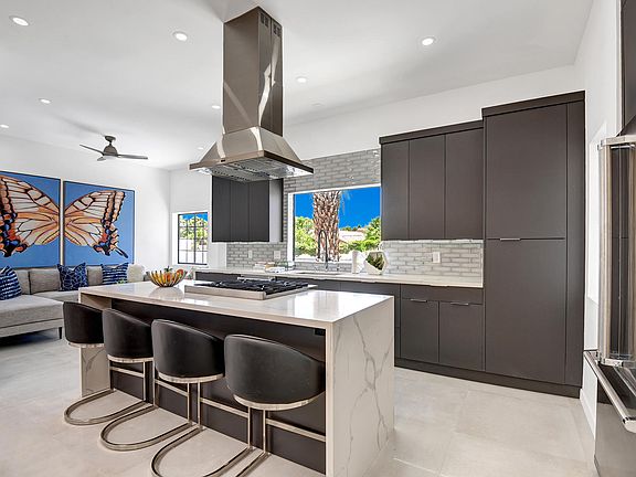 Welcome to 1050 Deepak Rd. This 80's home has been transformed into a Modern Paradise. Located in the Movie Colony, tucked in a quiet cul de sac, situated on an oversized lot, this central Palm Springs home offers an estate-like vibe. Enter the home through a dynamic and sweeping front door. Once inside the only challenge is what to notice first. Your line of site goes right to the outdoor covered kitchen/sitting area complete with tongue and groove ceilings. Huge attention to detail the house has new plumbing and electrical. The brand-new kitchen with Viking appliances is sure to impress. Get lost in the views of the Santa Rosas from the kitchen sink. The master bedroom holds the key to freedom. Enjoy direct access to the pool, a massive dual rainfall shower head, its very own private patio and a generous walk-in closet. This home also offers a stunning junior master and each bedroom is ensuite. Outside you will find the back of the home is surrounded by ficus. The pool and spa have been replastered, and the recently expanded backyard now offers a circular fire pit. Perfect in so many ways. Check out the 3-D tour. Call for your private showing or video tour today!