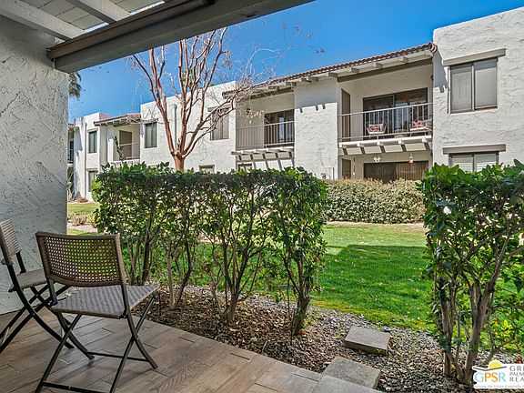 Wonderful 2 bed 2 bath home with updated New York style kitchen. This end unit offers natural light from windows on 3 sides and overlooks meticulously manicured grounds. Fresh paint, new HVAC, updated floorings and baths. Enjoy your private patio and dedicated private parking. Ramon Estados offers 2 pools and spas, tennis courts, pickleball and a community clubhouse. Located within walking distance to downtown Palm Springs where you will enjoy eateries, coffee houses and a host of retail shops. Minutes to Palm Springs International and walkable to grocery store and pharmacy. HOA dues include water, sewer, trash and gas. A great unit at a great price. Move in, unpack and enjoy!