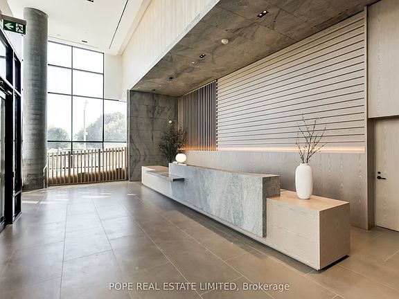 QA - Queen & Ash Bridge Condominium. A recently completed condominium by Context Developments & RioCan, constructed by Bluescape Construction Management & designed by Teeple Architects, with Turner Fleischer Architects acting as the architect of record & Mason Studio for interior design. A beautiful condominium bordering Leslieville & The Beach, located near the shores of Lake Ontario, overlooking Ashbridges Bay, Woodbine Park & Lake Ontario showcasing striking architecture & design. The apartment showcases approximately 1337 sf of interior space & 153 sf terrace complete with gas line, water bib & electrical outlet, southeast views from all rooms & the terrace of Woodbine Park, Ashridges Bay & Lake Ontario, laminate floors throughout, 9 ft ceilings, large open concept living room, dining room & kitchen, split bedroom plan, a designer kitchen complete with built-in Miele appliances, quartz counter, breakfast bar, spa inspired baths, loads of storage including large walk-in closets in foyer & the primary bedroom. 1 parking space complete with EV charging & 1 storage locker are included. The building features 24hr concierge, impressive lobby & mezzanine lounge spaces, a 5,000 sf fitness centre complete with strength, cardio & functional training zones, dedicated spin and yoga studios with spa like change rooms featuring steam saunas, a co-working lounge, a rooftop party room & lounge with sprawling outdoor terrace featuring outdoor lounge, cooking & dining zones,dedicated guest suites, parcel room, private outdoor rooftop dog run, a large courtyard featuring lush lawns, trees, planters & resident garden plots. Nearby are the shops & restaurants of Leslieville, The Beach, the waterfront trail, boardwalk, Woodbine Park & TTC 503 streetcar.