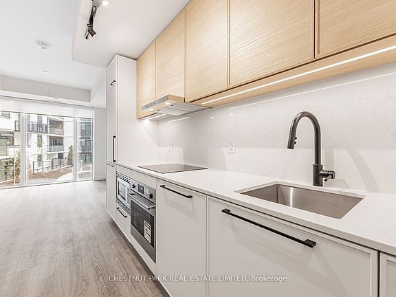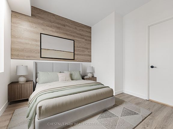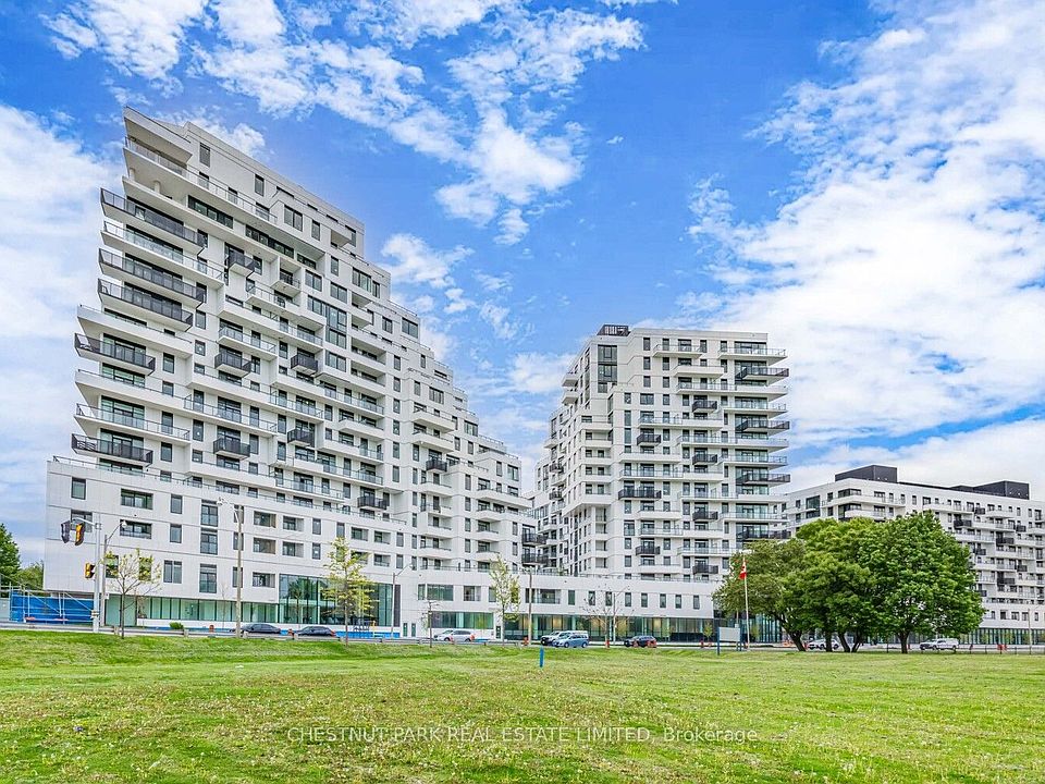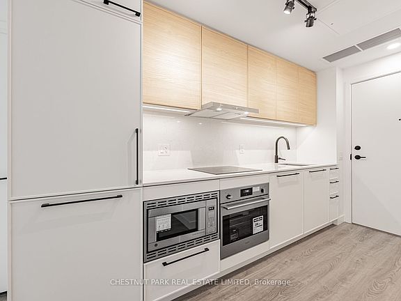 Upgraded 1 bedroom with fireplace & rooftop green views at Queen & Ashbridge Condominiums. Open concept layout with light, bright & modern finishes including oak design vinyl flooring throughout, spacious walk-in closet and electric fireplace. Kitchen features quartz countertops/backsplash and integrated appliances. Stylish bathroom includes soaker tub, handheld shower head with slide bar and vanity with storage drawers. Balcony overlooks podium rooftop urban forest with trees and resident gardening plots, away from the surrounding streets. Building will feature exceptional amenities for this location, including concierge, spacious fitness centre (spin studio, cardio area, strength training area, functional training space, yoga studio, change rooms & steam rooms), beautifully furnished co-working space with double-height ceilings and windows, sky lounge with BBQ terrace and 7 guest suites. Located directly across from Woodbine Park with services, shopping, dining, and entertainment at doorstep. Quick commute to downtown via 501 streetcar or bike along Lake Shore. Farm Boy, Loblaw's & Bruno's Fine Foods approximately 15 minute walk away. Some images have been virtually staged.