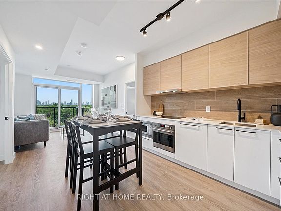 Be the first to live in this luxurious 2-bed with windows and closets, 2-bath suite at the brand-new Queen & Ashbridge (QA) Condos, locker and parking.This bright, open-concept layout features 9" ceilings, 7" wide-plank flooring, and an expansive living area bathed in natural light. Enjoy unobstructed, west-facing views of the iconic CN Tower and downtown skyline a stunning backdrop by day and a canvas of glowing city lights and breathtaking sunsets by night.The chef-inspired kitchen boasts a white quartz countertop, porcelain tile backsplash, and integrated two-toned shaker-style cabinetry w/modern hardware. Premium appliances include a 24"cooktop and wall oven, 24" built-in microwave, vented hood, 24" integrated fridge, and 24" integrated dishwasher. Ensuite laundry area! Both bathrooms feature custom-designed vanities w/quartz counters, porcelain tile flooring w/ tub/shower surrounds, sleek black fixtures, & black-framed mirrors w/integrated lighting. The king sized primary bedroom offers a spa-like ensuite w/his-and-hers closets, while the second bedroom is perfect for guests or a stylish home office.Steps to Sugar Beach, Queen Street East shops, Loblaws, the TTC, and the future Ontario Line. Residents enjoy access to world-class amenities: a 5,000 sq.ft. fitness centre with spin and yoga studios, steam rooms, & spa-style change areas; a 9th-floor Sky Club with a resident-run bar, lounge, Guest Suites, BBQs &panoramic city views; an Upper Lounge with park views; co-working spaces with private meeting rooms; 8th-floor Dog Run; and a tranquil Urban Forest. Concierge service, bike storage, tri-sort waste system. Includes locker , (1) Parking $150 a month additional