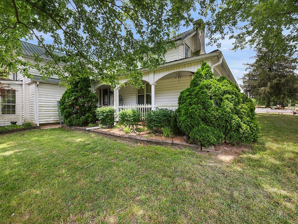 Enjoy country living on just under 62 sprawling acres. This charming 4 bedroom 2.5 bathroom home features a wrap-around porch and tons of character. Enter into the foyer and the cozy living room with gorgeous hardwood ceilings. The kitchen boasts soaring ceilings and tons of cabinet space.. The primary suite includes checkerboard hardwood floors and a private entrance. Primary bathroom has been updated with a handicap-accessible walk-in tub and shower. An additional bedroom on the main floor directly connects to the private sunroom! Upstairs are the additional bedrooms including a potential secondary master. 2 outbuildings including a barn fit to live in with a full kitchen, bathroom,2 bedrooms, and living space. Find your private escape at 1050 Eljie Rd.