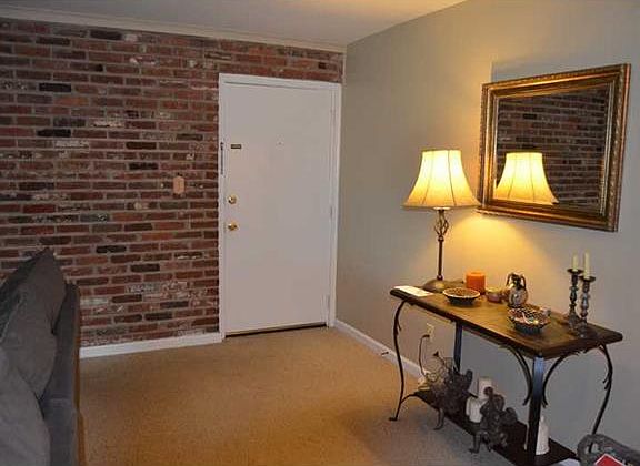 Spacious second floor condo in move-in condition with a GARAGE! enter in rear only 8 steps. Corner location adds privacy and extra green space outside. Updated kitchen, electric and windows. Large LR with charming brick wall. Door leads out to front patio. Fantastic kitchen with lots of cabinet and counter space and peninsula seating for 3. Third bedroom currently used as a dining room. in home laundry. Very convenient to the pool & party room. GREAT LOCATION!