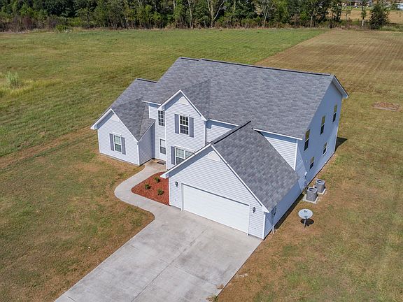 New to you!! This recently revived, move in ready, five bedroom, two and a half bath home has had the flooring replaced in the dining room/den, freshly painted walls and new carpet upstairs. With 3.88 acres of land there is plenty of room to roam. Featuring wood laminate and tile flooring downstairs, upgraded 42'' kitchen cabinets, whole home surge protector, and energy efficient building materials used to include siding and blown insulation. The master bedroom features a tray ceiling and a master bath with dual sinks. If a shop is in your future, dirt is already on the property to use as a foundation and a second light pole is setup for electricity for another structure. Don't miss your chance to own this piece of paradise. Seller to include the washer and dryer, zero-turn lawnmower, riding lawnmower, and ALL appliances with an acceptable offer.