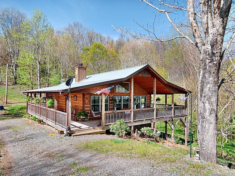 Nestled in at 4300' on Glade Mountain, just outside of Canton(I-40 only 7 miles away), is the perfect cabin for one who wants seclusion, yet convenience. Custom-built in 2015 & situated on 2.10 acres with year-round accessibility. 1120 SF of living area, boasting one-level living & open floorplan with 2BR/2BA- would be perfect as primary residence, summer getaway or vacation rental. Enter through custom wormy chestnut door & screen door. Upon entry, you'll be treated to the open great room/kitchen/dining area. Kitchen features flawless countertops, breakfast bar, soft-close drawers & hammered-copper farmhouse sink. Large double windows in great room/dining area allow for beautiful seasonal views of scenery & wildlife, while enjoying the wood-burning fireplace on those cold, wintery days. Whole house GENERAC generator, installed in 2016, allows for peace of mind. Wrap-around porch is perfect for entertaining or relaxing- just bring your rocking chairs & listen to the quiet!
