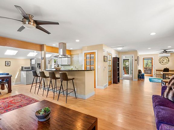 Wonderful West of Broadway Opportunity in Newlands! Enjoy this raised-ranch style home w/ beautiful lush landscaping & large fenced backyard just minutes to trails, Ideal Market, NOBO Rec Center & more! The home has been nicely updated and offers a contemporary loft-like feel w/ an open concept floor plan, wood flooring, cozy gas fireplace & skylights that offer abundant natural light. Updates over the years include exterior paint, tons of new landscape and deck, interior paint, ductless a/c, ceiling fans, lighting, newly painted kitchen cabinets and more. Main floor master with walk in closet and outdoor access. Finished lower level w/ 2 additional bedrooms, full bath, rec/family room & wet bar. NEW ROOF!