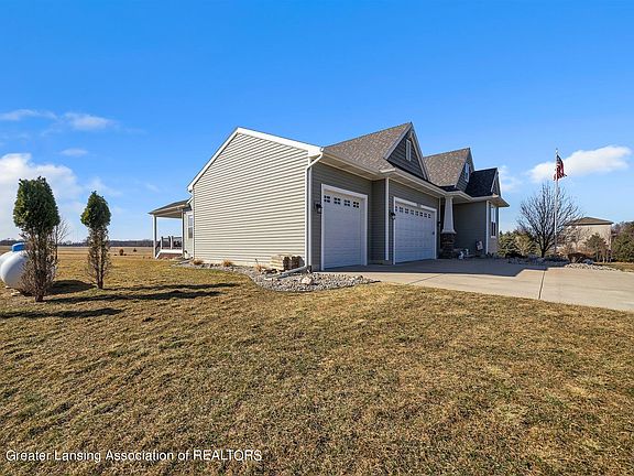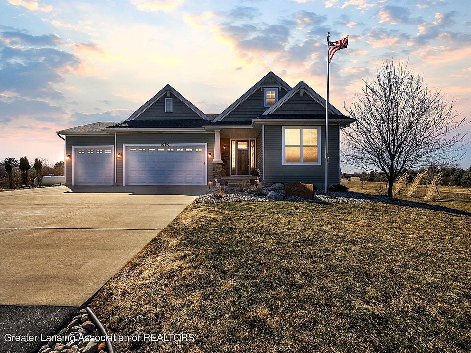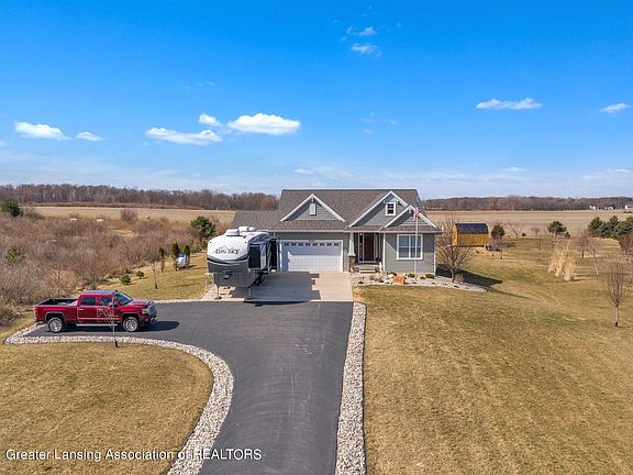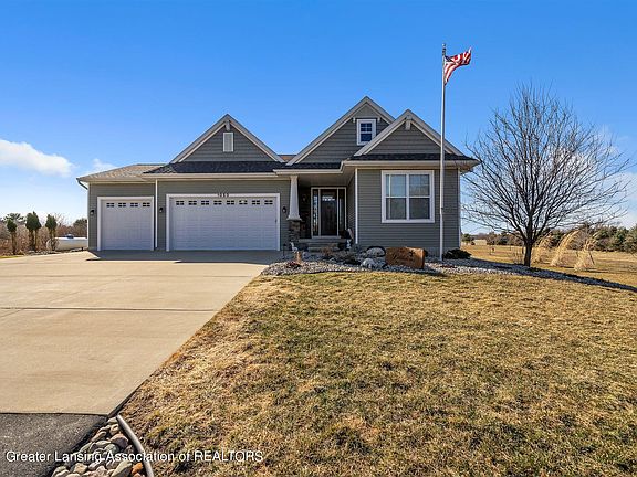 **IN RECEIPT OF MULTIPLE OFFERS. HIGHEST AND BEST DUE BY 3/22/21 by 2:00 p.m.** Immaculate newly-built ranch on over 2 acres with over $80,000 in upgrades from the current owner!! As you drive up to the home, you will notice the picturesque curb appeal and serene country setting. The driveway has been repaved with blacktop and there is plenty of room for guests to park, as well as a large 3 car garage. As you open the front door, you notice the scratch-resistant hardwood floors, as well as the 9 ft tall ceilings. The open concept living/dining/kitchen area will make you feel right at home. Spend many nights cozying up to the gas fireplace or entertaining family and friends in your upscale kitchen with quartz countertops and sizeable pantry. There are 2 additional bedrooms (one that can easily be used for a home office) and an additional bathroom, as well as the convenience of first floor laundry. Outside, you will love the upgraded outdoor space with premium decking and beautiful patio....no expense was spared. However, you can't put a price tag on the many memories you will make enjoying the beautiful Michigan springs and summers. The basement has also been redone with newer flooring and bar area. Ample storage space, as well as an additional bathroom and bedroom complete the downstairs. Less than what duplication cost would be for such an upscale home and perfect setting....schedule your showing before it's is gone!