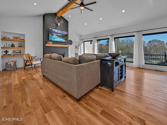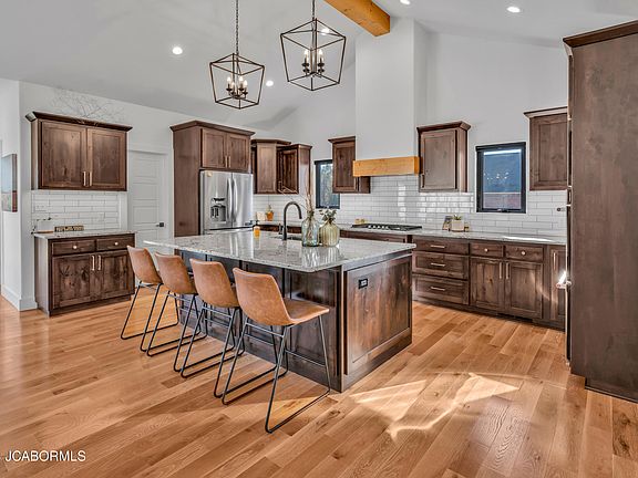 Discover modern luxury & small-town charm with this beautiful, custom-built brick home, completed in 2021. Sitting on a 1.13-acre lot in a friendly neighborhood, this home combines exceptional design with practical features perfect for comfortable living and entertaining. Inside, you'll find an inviting open floorplan with a split-bedroom layout.. The spacious main level boasts 3 bedrooms and 2.5 bathrooms designed with comfort and style in mind. Natural light floods the home through large windows across the back, showcasing the beautiful wood floors and cozy gas fireplace. The gourmet kitchen is equipped with custom cabinets, a double oven, gas range, and a large, walk-in pantry that provides ample storage. The kitchen's open design seamlessly connects to the dining and living areas, creating an ideal space for entertaining guests. Step outside onto the composite deck to enjoy the spacious backyard. There is a garden area, apple trees & a peach tree. The full, unfinished basement offers incredible potential for expansion, with framing and plumbing in place for 2 more bedrooms, a full bath & family room. There is also a storage area, locked gun/storage room and another garage for all your lawncare storage. Practical touches like the main floor laundry room, an attached 2-car garage on the main level, and the custom quality throughout make this home a must-see. Don't miss your chance to own this stunning property in a welcoming neighborhood!