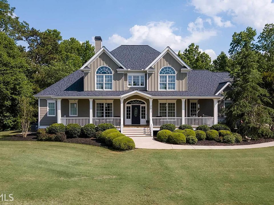 Gorgeous, exceptionally well maintained home on 2.61 beautiful acres with no HOA. Enjoy stunning sunsets from the huge front porch. Lots of natural light and striking hardwood floors throughout main living areas. Eat-in kitchen offers granite counters stainless steel GE Profile appliances, massive island with single bowl deep sink, ample cabinet space, baker's pantry, and walk-in pantry. Large Family Room with fireplace and built-in bookshelves leads to covered deck overlooking private back yard. Spacious Formal Dining Room is perfect for special occasions/holidays. Main level office or formal living room. Oversized master suite on main level has his/hers closets and updated master bath including subway tiled shower with marble tile floor and his/hers vanities. Three sizable secondary bedrooms including one guest suite, hall bath, and a spacious bonus room comprise the second floor. Finished terrace level boasts media room with tiered seating and kitchenette and nearby half bath. Additional suite offers sunny living room leading to patio, spacious bedroom with custom built-ins, and stunning custom closet and full bath with custom cabinetry. Abundant storage throughout including large storage room in terrace level. New(er) systems including tankless water heater, 2.5 y.o. architectural roof, and 1 yr old HVAC systems on upper 2 floors. Highly desired school district. Convenient to 575 and close to growing downtown Ball Ground.