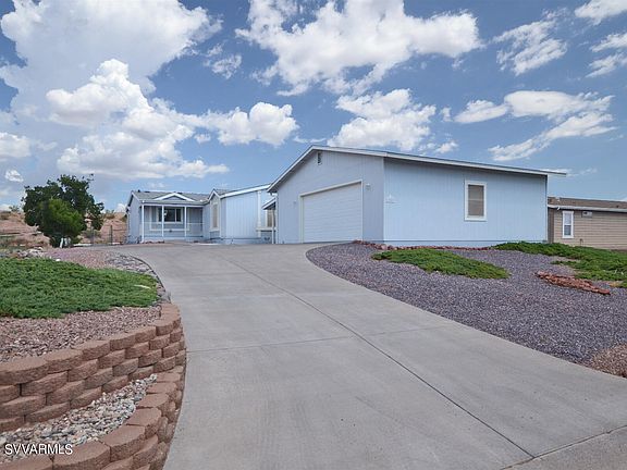 Move in ready! Exceptional manufactured home available in the desirable Mingus Shadows area of Clarkdale. No HOA! Mountain views from the front covered patio, welcoming oversized kitchen with island and roll out cabinet shelving, gas stove/range, pantry, under sink R/O system, screened in patio, vaulted ceilings, split floorplan with large primary ensuite and separate garden tub and shower. Closets galore! Bay windows! Excellent storage throughout, sizeable laundry room, solar tubes, tankless hot water & soft water systems, updated heating/cooling, owned solar panels for energy efficiency, fenced back yard. Substantial parking space for multiple vehicles, garage has work shop/hobby area, and MORE storage. Original owners since 2003. All showings must be accompanied by a Realtor.