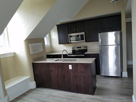 A gorgeous, modern, remodeled apartment at an unbeatable price. New stainless steel appliances (including a dishwasher) refinished hardwood floors, granite counter tops, new AC, new cabinets, and over-sized windows allowing in ample sunlight. Fully remodeled bathroom and washer/dryer hookups (washer/dryer not supplied). Professionally managed. Security deposit is one months rent. Owner pays for water and garbage, tenant pays for gas and electric