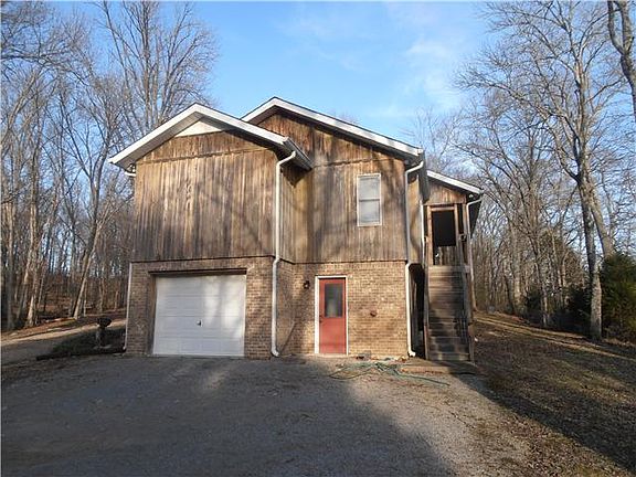 Rustic home overlooking Cumberland River Private Wooded acreage/ fenced Barn Home features open kitchen/ living room Split bedroom floor plan Covered front and back porch basement with a one car garage /workshop