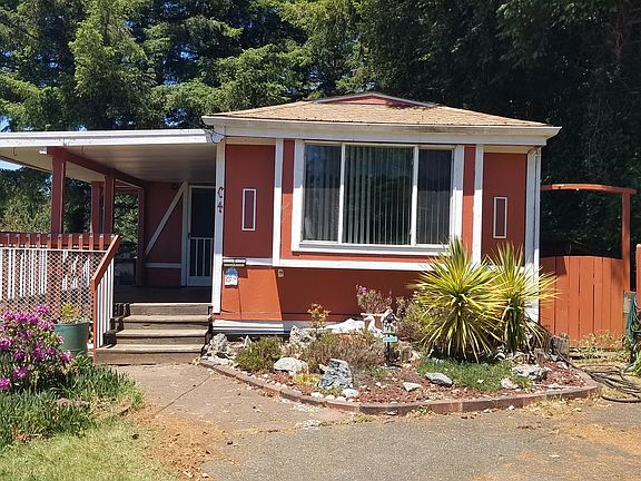 MOBIL HOME IN VALLEYVIEW MH PARK: 2 bedroom, 1 bath single-wide with 8+10 add-on to living room; covered deck with view overlooking the Coquille Valley, three outside storage sheds; range, refrigerator, dishwasher, double-pane vinyl windows, forced-air electric heat, landscaped with roses, rhododendrons, and other beautiful plantings, ample parking. This is a well-kept 1975 Fleetwood of approximately 924 sq. ft. with some renovations in a clean, comfortable 55+ park, ready to enjoy! Buyer must obtain park approval prior to purchase. Call your agent to make an appointment.