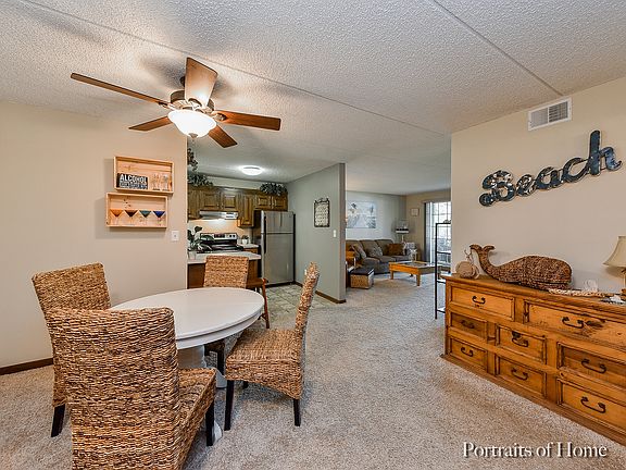EASY LIVING in this beautifully remodeled 1ST FLOOR condo in great Aurora location, close to I88 and Metra. Nicely remodeled kitchen with newer stainless steel appliances, countertops, sink, faucet, fixtures & more. Both baths have newer vanities with granite counters, faucet & fixtures. New windows in the master & bedroom #2. Newer carpet throughout, entire home neutrally painted & updated ceiling fan and fixtures. Upgraded furnace and A/C approx 5 years old. Larger patio overlooks grass area & parking lot. Includes heated garage space with separate parcel number & storage space. The storage space for this unit is directly behind the parking space ~ so convenient! Pool & Clubhouse..Perfect, move in condition.. Schedule today!