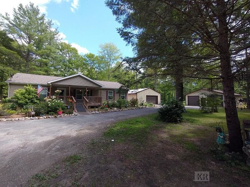 Wow! Check out this lovely 3 bedroom, 2 bath home on 4 wooded acres less than 10 minutes from town. This newer home was build in 2016, with a well and septic that was installed at the same time. This nice home features a covered porch, covered deck, spacious open floorplan, bamboo hardwoods floors, master bedroom suite, roomy kitchen w/plenty up counter & cupboard space and more! All of the appliances are included with the sale. All of this sits on a beautiful wooded parcel with a fenced in back yard, 30x40 pole barn, 24x26 detached garage, paved driveway & garden shed in the back. Sit out on your back deck and watch the deer, birds and other wildlife. You'll love the convenient location, not far from town. This home also includes the owned propane tank. (FHA Approved for financing)
