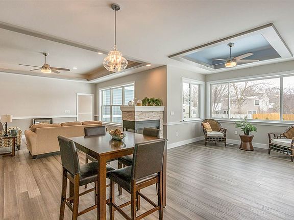 Sleek Modern/Transitional by Ferrel Construction in the popular Palisades Subdivision ready for its new owner! This expansive open design really has style and quality featuring a gourmet kitchen that boasts a spacious Quartz island with breakfast bar, gorgeous Maple painted cabinetry, custom tile back splash, 6x6 walk-in pantry, and premium LG appliances including a French door style refrigerator, gas range with pot filler, and professional grade hood vent; sunny 4 seasons room; designer ceilings and accent lighting; (2) 3 sided fireplaces with custom stone details; 6x14 main floor laundry room with built-in lockers, more cabinet space, handy utility sink and a sliding barn door; beautiful wood flooring through much of the main level; white painted trim including extra wide baseboards and cased windows; white solid panel door and chrome hardware and fixtures; living room with a 10 ft. recessed ceiling; luxurious master suite equipped with an all tile multi jet shower and 10 ft. deep walk-in closet; fantastic lower level with 9 ft. ceilings and windows that look out into the yard, an unbelievable walk behind wet bar featuring more Quartz countertops and a wine refrigerator, rec room and family room plus another full bath, 2 more bedrooms and large storage room! More special features include a tremendous Andersen window package including an 8 ft. patio door; maintenance free (Trex) decking and metal railing with stairs to ground level; solid marble vanities and half wall tile in 2 bath rooms; roughed in for central vacuum; and built to exceed energy star specifications including all LED lighting, high efficient equipment, and a heat recovery ventilation system!