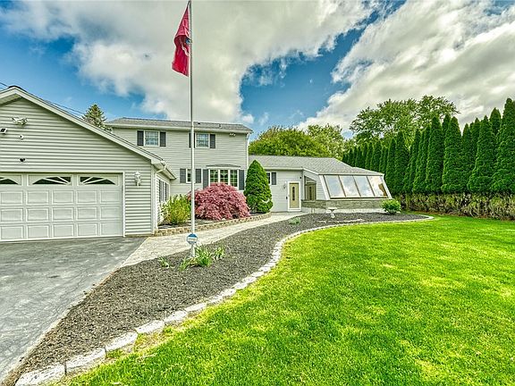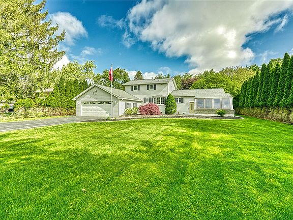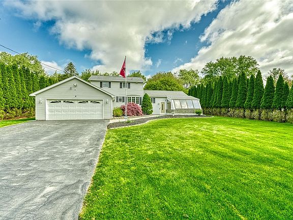 Lovingly cared for by the original owners/family, this 3 bedroom, 1.5 bath home sits on private .8 acres. This 377' deep lot offers a fire pit area, 2 sheds & electric set up for a pool. You'll love the 3.5 car tandem garage w/ plenty of room for storage, workshop & additional storage space above. New driveway (2017). Professionally installed paver sidewalk & landscaping lead you to the brand new front door (2023). Spacious eat-in kitchen, remodeled in 2019, features new: cabinets, Corian counters, rangehood. Plenty of counterspace with all appliances included (new dishwasher 2019). Additional features include a formal dining room, great room with vaulted ceiling, hardwood floors, Andersen windows throughout. Amazing 4 season heated sunroom with Pella windows, also provides supplemental heat to the home. New Energy Star furnace, A/C, air purification system & WIFI thermostat (4/2023). New hot water tank (10/2022). New attic fan (2022). Tear off roof (2008) w/ 25 yr shingles. Part finished basement w/ an extra shower. Washer & dryer included. Blink & Ring systems remain, along w/ 6 exterior cameras.***Delayed showings until Thurs 6/1 at 10am. Delayed Negotiations Mon 6/5 at noon***