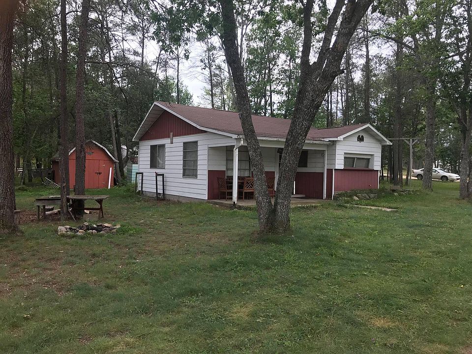 MACK LAKE DEEDED ACCESS- 3 bedroom, 1/2 bath cabin with well, septic and electric. 4 lots on the corner of two county-maintained roads with deeded lake access to Mack Lake. 1000s of acres of federal land within walking distance and ride to the ORV trails from the property. Could use some TLC but ready to use otherwise. C-639 $ 35,000