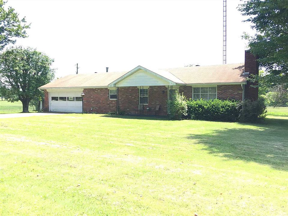 3 Bedroom ranch home with charming country setting. This brick faced home sits on 2 acres offering peace and quiet to the owners. Inside you will enjoy sitting by the fireplace in the living room that opens up to the dining room and kitchen and you'll never have to scrape the windows again with a 2 car garage.