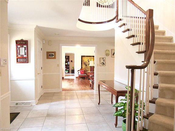 Stately brick 2 story with hip roof - gorgeous 2 story foyer with circular staircase offers the gracious flow into this classic home. Cherry kitchen with corian counter tops and ceramic tile floor. Fireplace family room, coffered ceiling, with slider that leads to a terraced patio and private wooded ravine. First floor office with glass french doors and wood floors. Sun room with tiled floor overlooks the peaceful private setting. Finished lower level is a walk out with rec room, another bedroom and full bath. Newer furnace too.