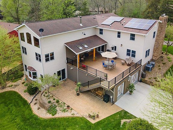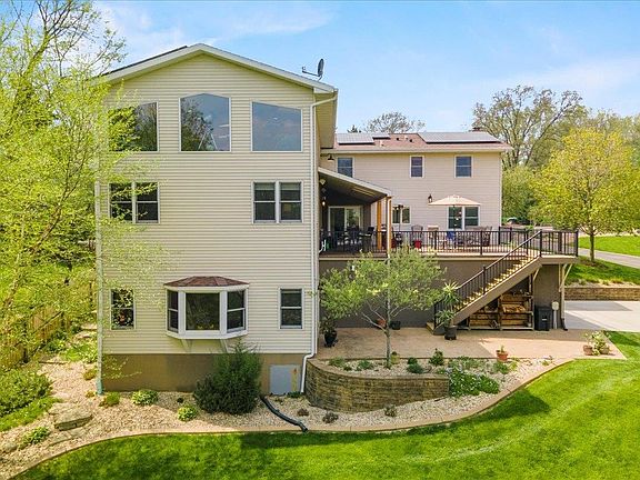 Space, Space, Space! Check out this meticulously maintained home in Dubuque's south end with over an acre lot. Enjoy the feel of country living with the convenience to town in this one of a kind home. The main level welcomes you with a great room complete with a large custom bar, wood stove and loft overlooking the wooded lot. Steps away you can relax or entertain on the large deck with the same view. Upstairs you'll find four bedrooms with two suites and a laundry room. Downstairs features a commercial level fitness studio with its own separate entrance. You'll find so much potential here! Looking for an in law suite? Needing space for an in home business? Want to rent out the space and have someone else help pay your mortgage? The possibilities are endless. Let's head back outside to enjoy the inviting fire pit and trails! On the roof you'll notice a significant solar panel array that keeps electric costs low. You can find a video walk through and additional photos at https://picyourhouse.net/1050-Richards-Rd/idx . Call your favorite Realtor to schedule a showing today.