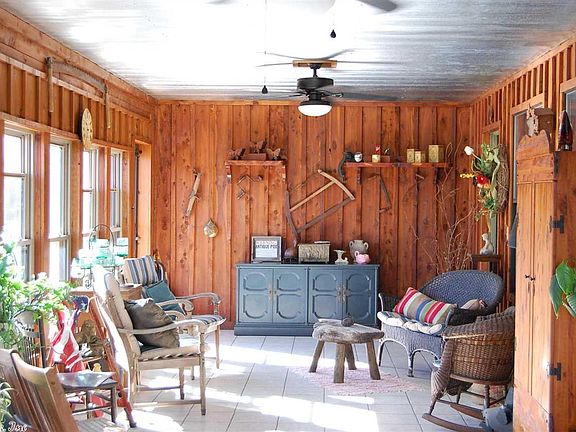 Lake front home with acreage. This home is situated to take full advantage of the water view with a wonderful enclosed sunroom for enjoying the view anytime of year. Rustic rock fireplace and cathedral ceiling, open floor plan, metal roof, man cave and all the beautiful flowers you could dream of.