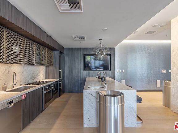 Experience luxury living in this remarkable corner home boasting dramatic floor-to-ceiling windows with sweeping panoramas of South Park and the iconic Downtown L.A. skyline.The stunning chef's kitchen features an oversized marble-topped island, sleek soft-close Domus & Domus Italian cabinetry, brilliant Carrara marble countertops and backsplash, and premium Bosch and Liebherr stainless-steel appliances.The primary suite is drenched in warm southwestern light and showcases expansive floor-to-ceiling windows, a generous walk-in closet with custom built-ins, and a spa-inspired en-suite bath with dual-sink quartz vanity, richly tiled porcelain walls and floors, and a chic walk-in shower.On the opposite wing, a private guest bedroom offers dramatic views toward L.A. Live, its own large walk-in closet with new cabinetry, and easy access to a full guest bath.Additional upgrades include motorized roller shades throughout, an LG all-in-one washer/dryer, Nest smart thermostat, and select Restoration Hardware furnishings. Two assigned parking spaces and partial utilities are included.At Ten50, enjoy resort-style amenities: an infinity-edge pool and spa, fire pits, barbecue grills, state-of-the-art fitness center, resident lounge with full kitchen and formal dining room, business center, media screening room, 24-hour security and concierge, plus rare guest parking. All this just steps from L.A. Live, Crypto Arena, Metro lines, and the city's most celebrated dining, shopping, and entertainment.