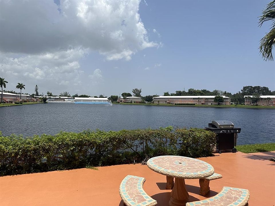All furnished 1/1 with water view, tile throughout, updated kitchen cabinet and bathroom, Shutters on all windows and doors, patio in front of the unit facing the lake with BBQ. . Well maintained community with nice pool, clubhouse with shuffleboard and activities. Close to highway, shopping and transportation.