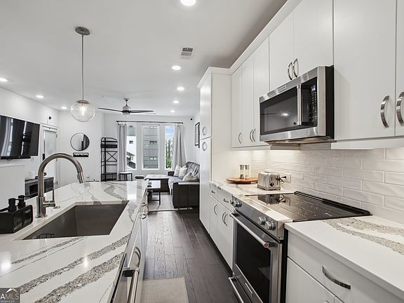 Luxury Condo in the Heart of Atlanta. Welcome to effortless city living in this stunning 2-bedroom, 2-bathroom modern condo, perfectly situated near downtown Atlanta. This fully furnished, move-in-ready residence offers sleek contemporary finishes, an open-concept layout, and high-end design throughout. Step into a bright and airy living space featuring stylish furnishings, a beautiful kitchen with stainless steel appliances, gorgeous quartz countertops, and custom cabinetry - Fully stocked for all your culinary needs. The spacious primary suite has a king bed topped with luxurious linens and a boasts a double vanity, walk-in shower and large closet, while the second bedroom, with Murphy bed, provides flexibility for guests, a home office, or both. Ample closet and storage space throughout, including a one car garage. This home has everything you need to just drop your bags and start living! Located just minutes from top-rated restaurants, boutique shopping, The Beacon, Grant Park, the Atlanta Zoo, Georgia State University, Hartsfield- Jackson Atlanta Airport, and the local Sunday farmers' market. This condo offers the perfect blend of luxury and convenience. All utilities included. Pets considered. Recent price improvement. This condo is also for sale for $469,000. Copyright Georgia MLS. All rights reserved. Information is deemed reliable but not guaranteed.