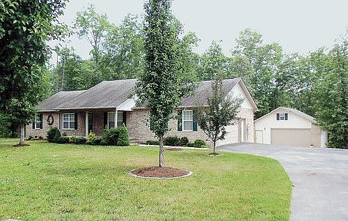 Absolutely perfect setting for your dream in TN. 1900 sf., 3BR/2.5 BA, Great room with fireplace, spacious kitchen with island and 13x17 dining area with mountain view. Master suite, easy step shower, walk-in closet. 3 season room opens to deck. Half bath, laundry with sink, attached garage, plus detached garage for your toys. Rolling lot extends off bluff to Obed river below. Great value, check it out!