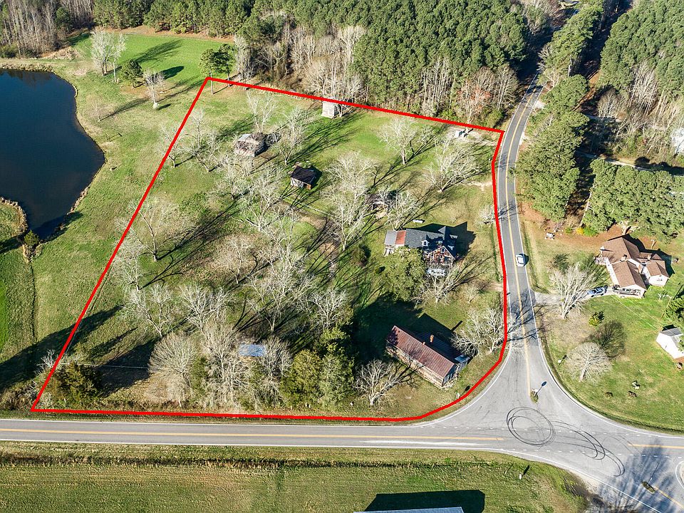 Beautiful remodeled brick home sitting on 4.24 acres with approx.. 1.50 ac fenced in Horse pasture w/ 20 x 10 shelter. Several Barns on the property includes an old country store built in 1930 on corner of Sykes and Seven Paths rd. New roof, new LVP Flooring throughout main level, Main Bedroom. has a 11 x 11 walk-in closet with a built-in Liberty Gun safe. New paint on Walls, Ceilings & Cabinets, New light fixtures, all completed in 2024. New windows installed, New Hvac unit and New Plumbing and Electrical completed by a previous owner in 2017. Main level is 1353 sqft. Upstairs has 722 sqft that is finish but not remodeled that can not be included in total sqft. due to no heat or AC and a ceiling height of 7 ft. (See pics) Property has a 60' x 60' easement (see map) for Brightspeed internet equipment with a lease to pay owner @ $1000 per year (Renewal is up 08/24 and lease to increase see Agreement.)