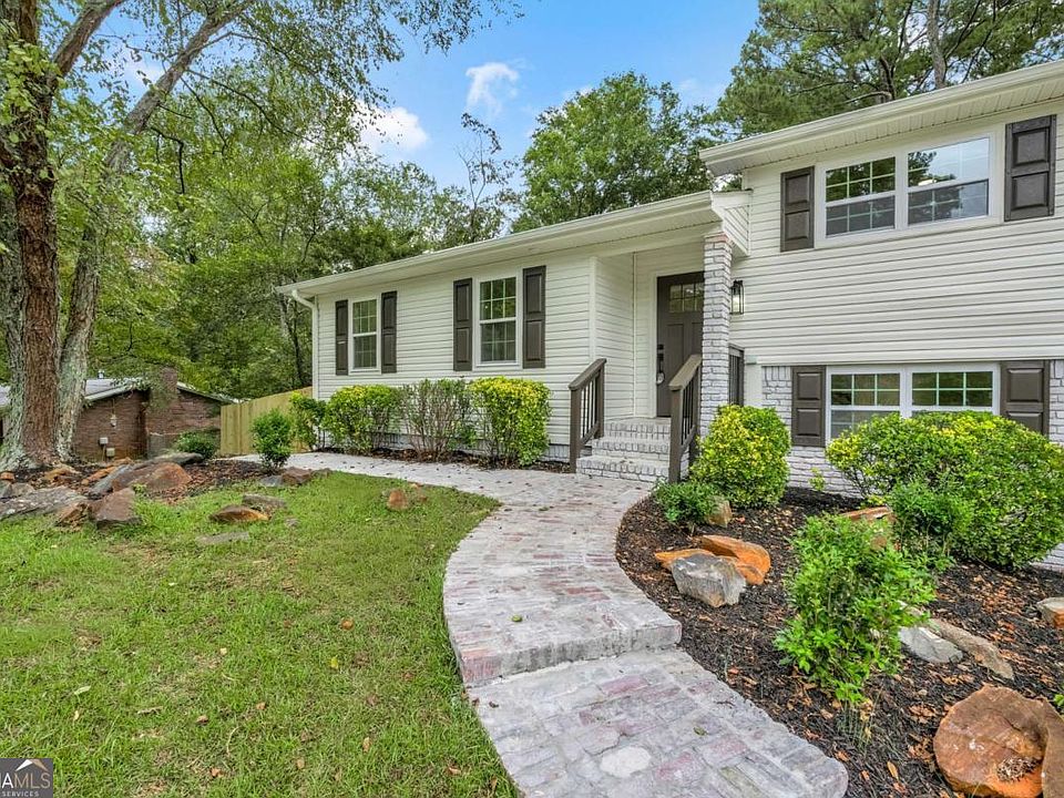 Discover this beautifully renovated traditional split-level home just minutes from Downtown Woodstock! Situated on a spacious lot with a huge, fenced backyard, this property features a brand-new roof, new windows throughout, and modern finishes from top to bottom. A standout feature is the fully equipped apartment-style suite on the lower level with its own private entry-ideal for extended family, guests, or potential rental income-estimated rental potential of $1,200/month. Enjoy unbeatable convenience only 1.8 miles from Downtown Woodstock and Woofstock Dog Park, and less than a mile from I-575 for easy commuting. Updated HVAC and water heater, both installed around 5 years ago for added efficiency and peace of mind.