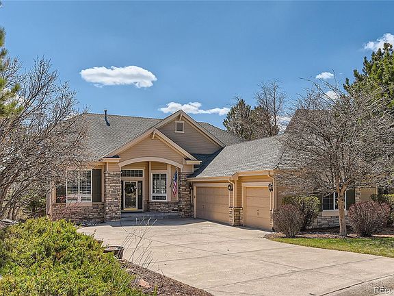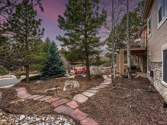 Outstanding main floor living with this ranch floorplan in highly sought after Forest Park. The towering pines and gamble oak that surround this home create a true mountain feel! The outdoor spaces were created to allow you to enjoy the beauty of Colorado! The spacious maintenance free rear deck provides room for outdoor entertaining with space for a dining table plus a separate seating area. The retractable awning provides shade on those hot Colorado summer days. There are even peak-a-boo mountain views! A meandering flagstone path winds through this xeriscaped backyard paradise! The elegant interior of the home features travertine tile floors in the entry and kitchen, plantation shutters, high ceilings and large windows to allow natural light to flow throughout the home. The great room is the center of this home with 12’ ceilings and large windows that look out to the beautiful backyard. The gourmet kitchen has a gas cooktop, newer stainless steel appliances, eat at bar and walk-in pantry! The kitchen nook provides the perfect place to enjoy your morning cup of coffee while looking out at the natural beauty of this neighborhood. The formal dining room with coffered ceilings opens to the great room and provides a great entertaining and eating area. The main floor office with glass French doors is set up to be a great home office space! The spacious master suite has a 10’ coffered ceiling, master bath and large walk-in closet with a closet system. The walkout lower level has 9’ ceilings and provides additional living and entertaining space. The great room and rec area contain room for your home theatre, pool table (which is included) and workout equipment. The two additional guest bedrooms are secluded from the rest of the lower level providing a private area for guests and family. A large storage area completes the basement. The 3 car garage has built in cabinets for additional storage.